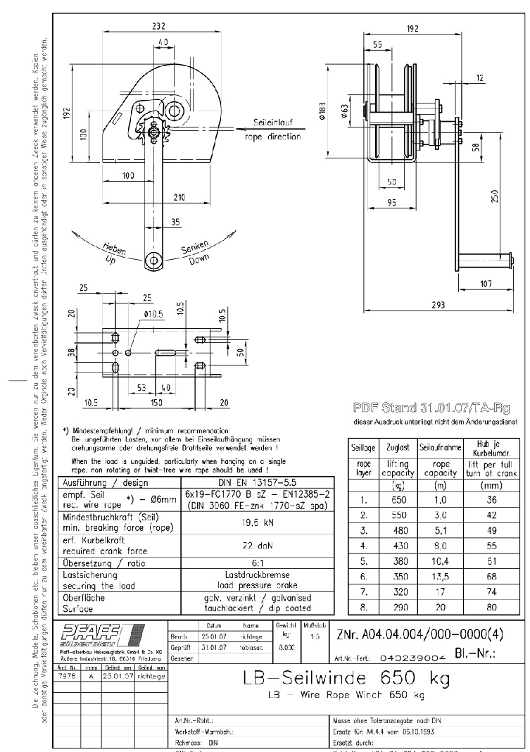 Лебедка ручная консольная Pfaff-silberblau SW K-LB 650