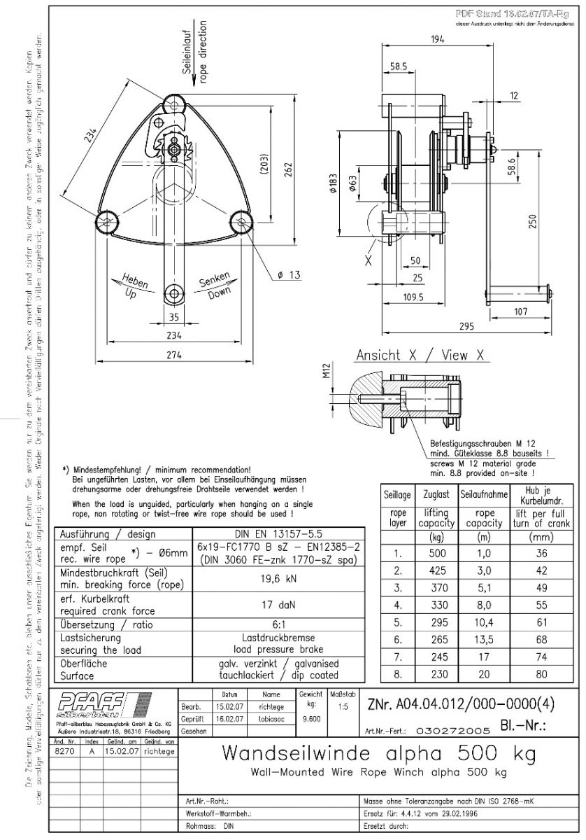 Лебедка ручная настенная Pfaff-silberblau SW-W ALPHA 500